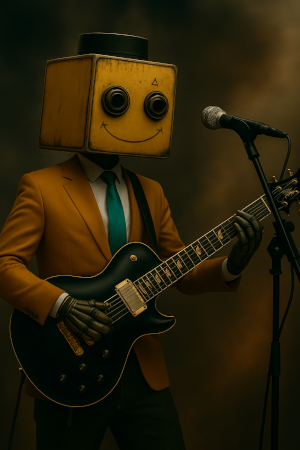 Guitarist & Singer - With a voice modulated by cosmic frequencies and riffs sharp enough to slice through time, the intergalactic frontbot leads with a six-string fury that shakes the stars.